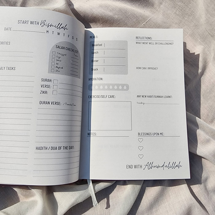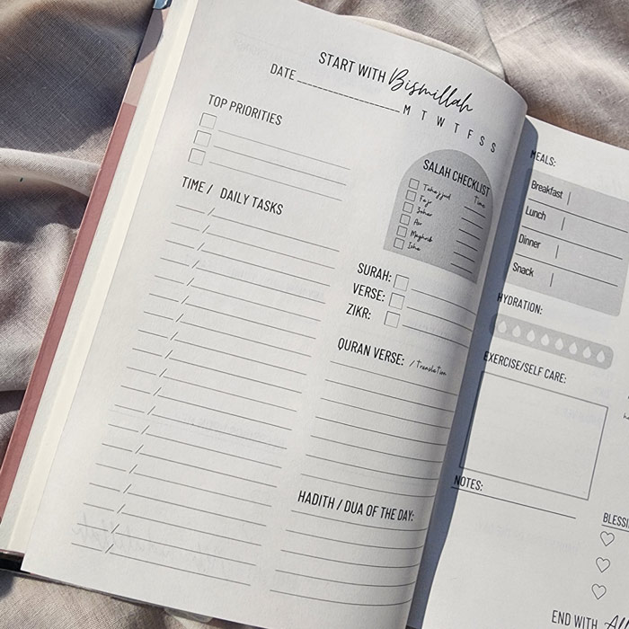 It’s such a beautiful planner! Perfect for organising your day! Best planner n cover’s everything ! Will make you to chose deen over duniya. Allahumabarik ?